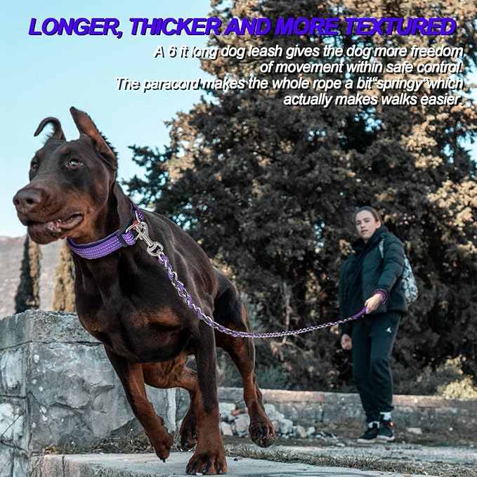 Dog Leash Rope Chain, Nylon Rope Metal Chain for Pet Leads. 6ft Heavy Duty Chew Proof Training Walking for Medium Large Dogs. (Large, Blue&Purple)