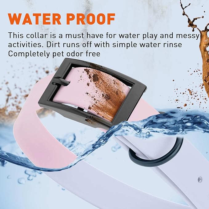 • Free Your Dog to romp in puddles and retrieve from lakes with the Dogline Biothane Waterproof Dog Collar. This water-repellent collar stays dry and odor-free, without shrinking or losing flexibility.