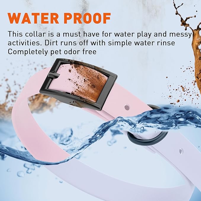 • Free Your Dog to romp in puddles and retrieve from lakes with the Dogline Biothane Waterproof Dog Collar. This water-repellent collar stays dry and odor-free, without shrinking or losing flexibility.