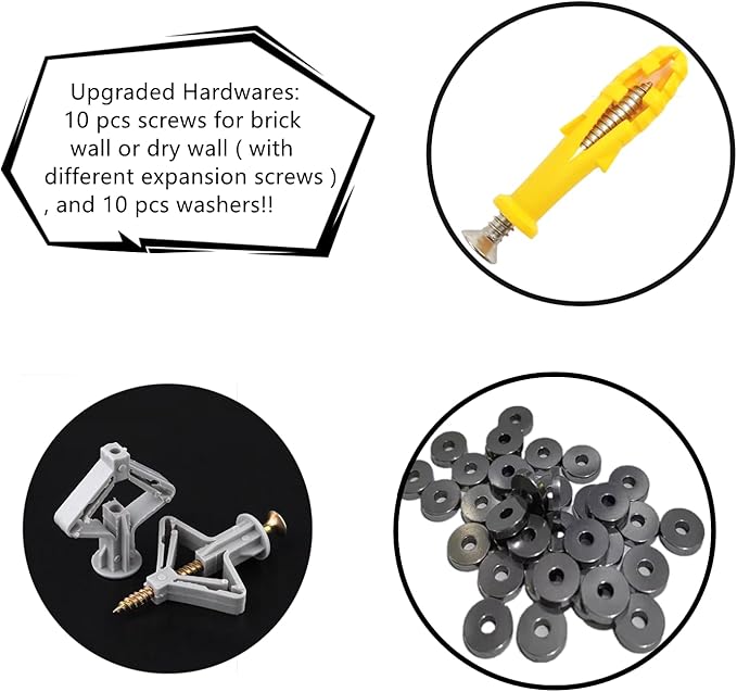 - 【UPGRADED HARDWARES】Comes with 10 pcs screws for brick wall or dry wall ( with different expansion screws ) , and 10 pcs washers to secure the rug to wall better.