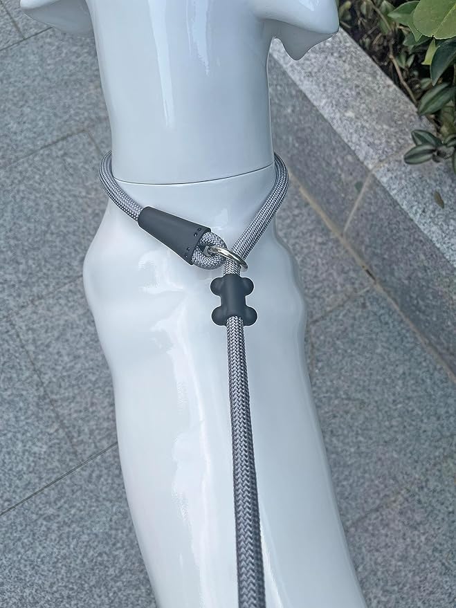 Slip Lead Dog Leash,Strong Nylon Rope Leash and Padded Handle,No Pull Outdoor Walking Training Lead for Small Medium Large Dogs (Grey,1/2"×4ft)
