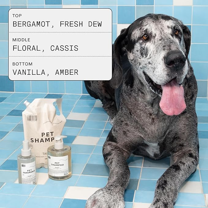 - Signature fragrance: Infused with top notes of bergamot and fresh dew, middle notes of floral and cassis, and base notes of vanilla and amber, our pet shampoo ensures your furry friend smells delightful