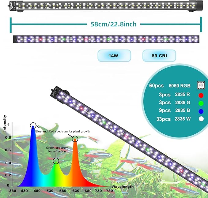 - Full Spectrum+Single-Color Modes: Our fish tank light can switch between full spectrum,7 single-color, cycle modes, providing a variety of rich options to meet your lighting requirements. Whether you want to simulate a natural ecosystem or enhance the aesthetics of your aquarium, it can be easily accomplished