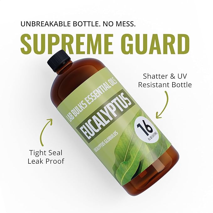 - Uv Resistant Durability: Our eucalyptus essential oil for humidifier is stored in amber plastic bottles to shield against UV damage, ensuring extended freshness. This premium eucalyptus oil is steam-distilled from India-sourced leaves and carefully bottled in the USA