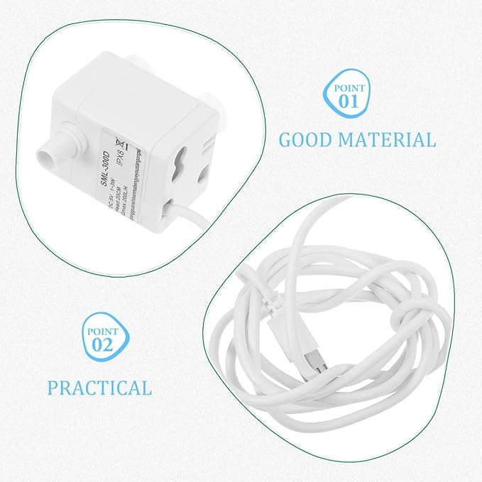 - Fashionable white: Mini USB Fountain Pump has a white appearance, matching home decoration, adding beauty