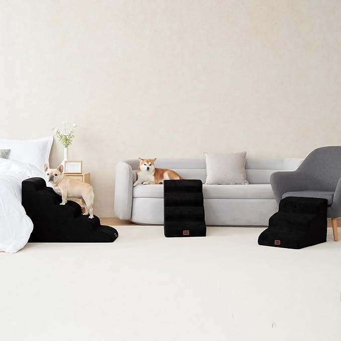 - SPECIFIC AND STEADY DESIGN - 33D density of pure foam make this stair more steady when your pets walk on. The dog bed stairs can provide strong support for pets in the walking process. Low angle slope design can better protect your pet's joints.