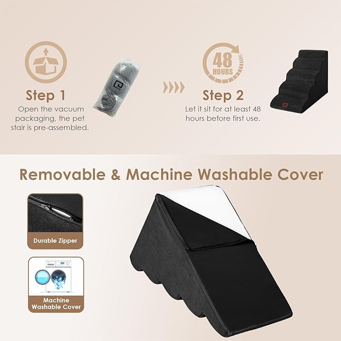 - EASY TO CLEAN - The dog step has a removable washable cover made of bonded fleece that can be hand washed or machine washed, so you don't require spending a lot of time cleaning it. It's very convenient.