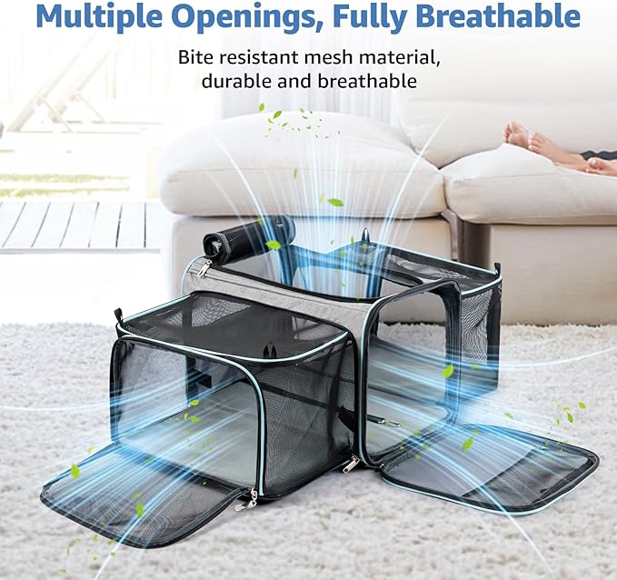 - 【Expandable Pet Carrier with Wheels】The pet carrier measures 16.5" L x 12" W x 12" H and can be expanded to 30.4" L x 14.5" W x 8.8" H by extending 2 mesh windows. The dog carrier with wheels extends SQUARELY to both sides, providing 60% more space than other dome-style expandable carriers.