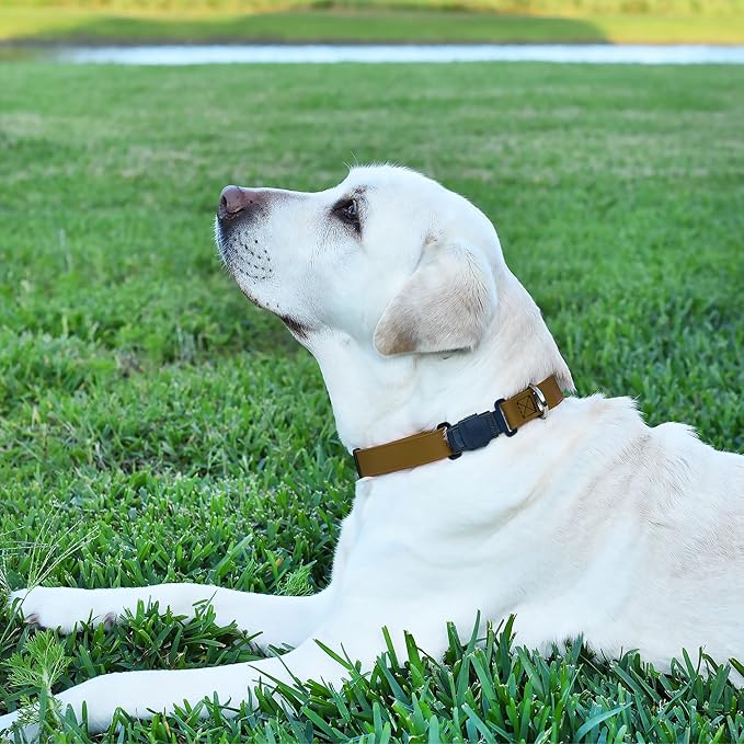 Dogline Biothane Waterproof Dog Collar with Herm Sprenger Stainless Steel Quick Release Buckle – Heavy Duty Tactical Durable Collar for Dogs – Comfortable and Safe Pet Collar, W 1" L 15-25", Brown