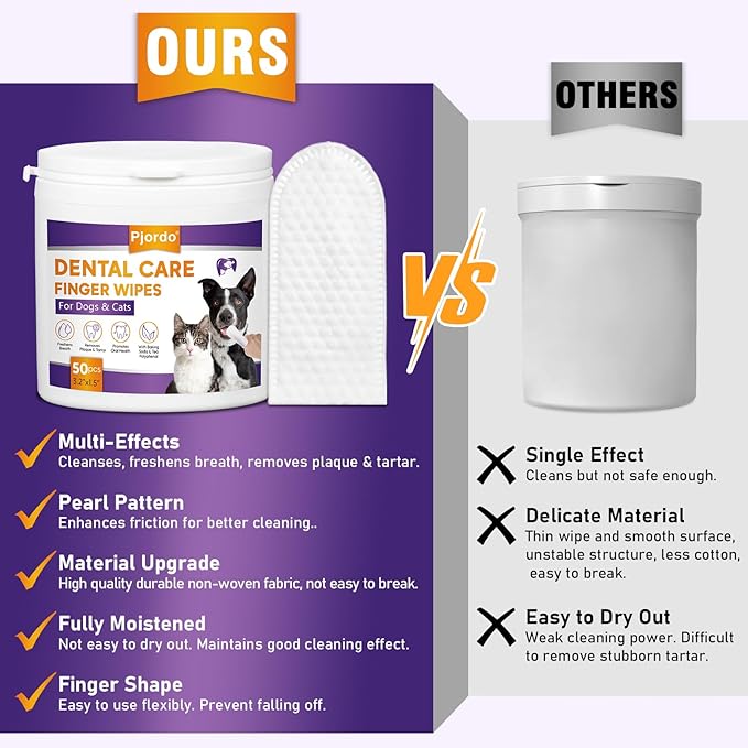 - Clean Teeth and Gum: Pjordo Dental cleaning wipes for dogs and cats effectively removes tartar and plaque buildup, keeps your pet's teeth and gums clean and healthy, and promotes good oral hygiene. Gentle cleaning, no hard toothbrush, no mess.