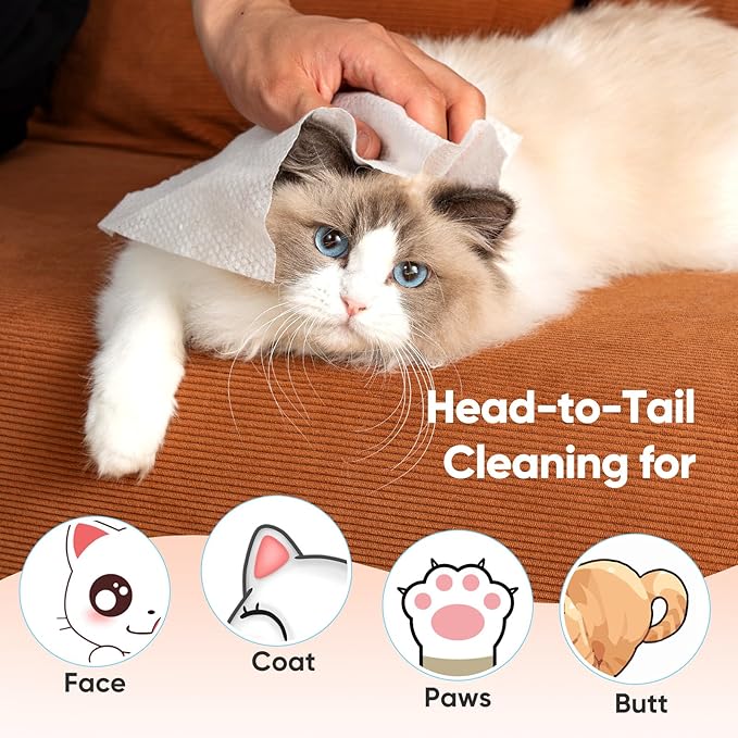 - Gentle Strength, Maximum Clean: Thick, soft wipes are durable for thorough cleaning yet gentle on sensitive skin. Your pet will enjoy being pampered from head to tail.