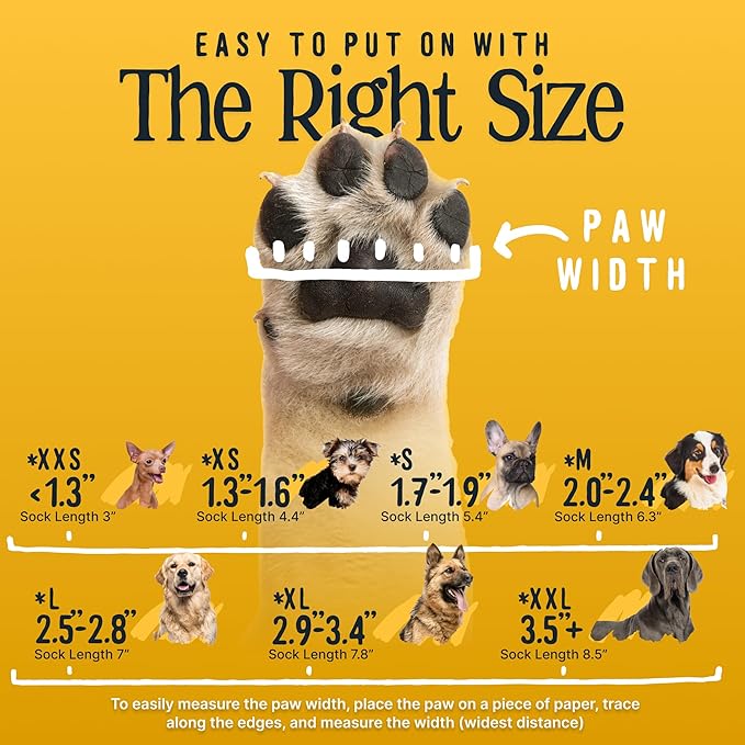 - XXS Size: Smaller than 1.3" paw width. Make sure to measure your pet while they are standing with weight on paw. Includes 4 dog grip socks made of elastic cotton nylon fabric that stretches.