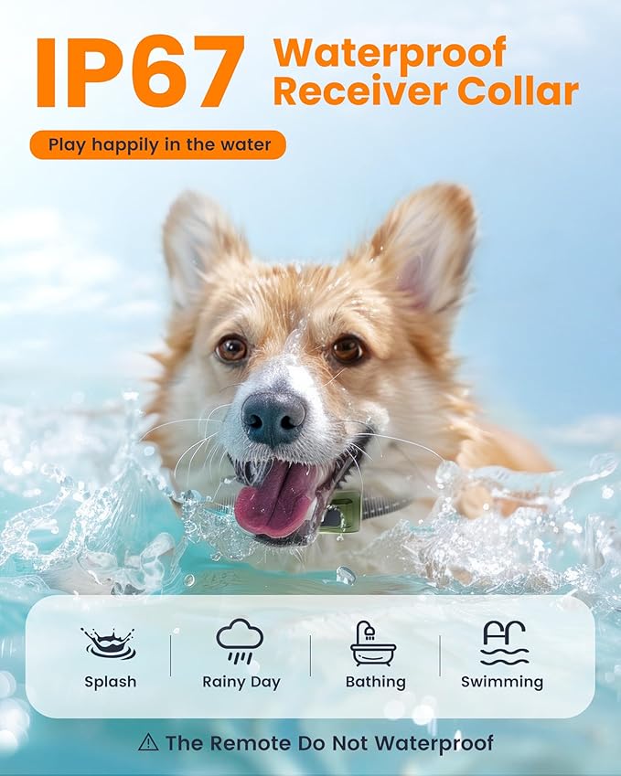 - 【IP67 WATERPROOF RECEIVER & SAFETY LOCK】 : Built to withstand water exposure, this dog training collar with remote features a safety lock to prevent accidental activation when in hand or in pocket, ensuring your dog's emotional well-being