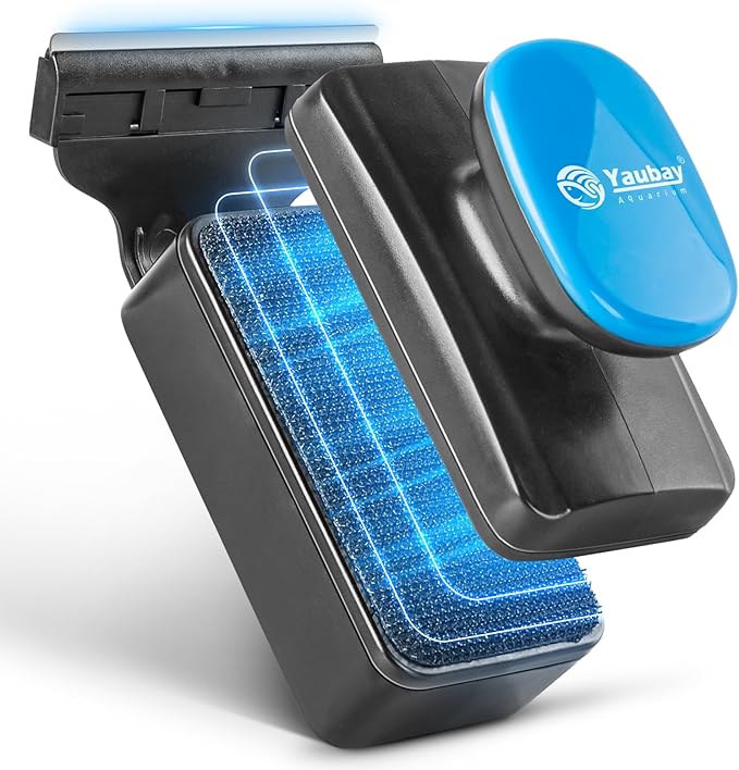 - Double Sided Cleaning: YAUBAY aquarium magnet glass cleaner adopt the dual-sided design. The abrasive velcro pad can effectively scrub hard stains or mineral deposits inside the glass. And the soft pad is used to wipe dust outside. Deep cleaning without leaving blind spots,clean fish tank throughly. Make your aquarium looking pristine