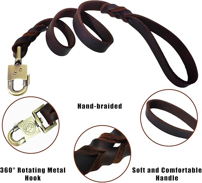 - 【Leather Dog Leash】This dog training leash is made of strong and soft genuine leather. This hand-woven dog leash is more elastic and more fashionable. Handmade, strong tensile strength and durable.