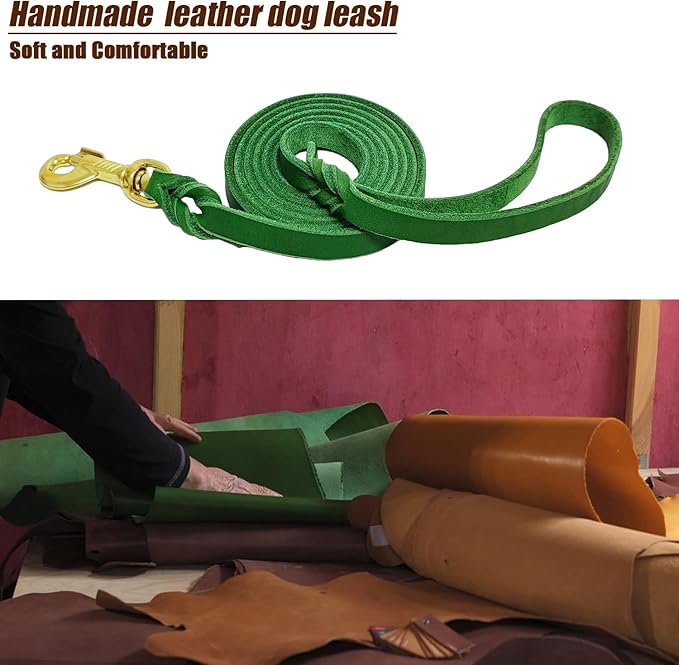 LWBMG Leather Dog Leash 6ft x 1/2 inch, Heavy Duty Pet Leash, Strong Sturdy Genuine Leather Braided Dog Leashes, Soft and Comfortable Puppy Leashes for Small Medium Dogs Training Walking Green