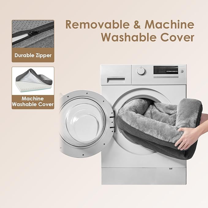 - CARE GUIDELINES: This pet bed retreat boasts a removable, machine-washable cover with a convenient zipper. Simply extract the foam core and launder the cover. Kindly remember, the foam insert is not designed for washing. Postunpacking, allow 24-48 hours for the bed to fully inflate.
