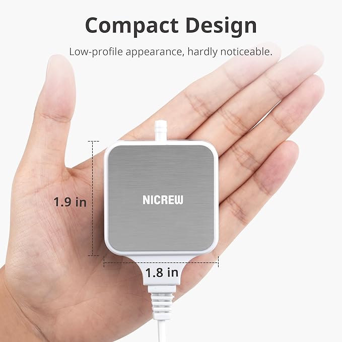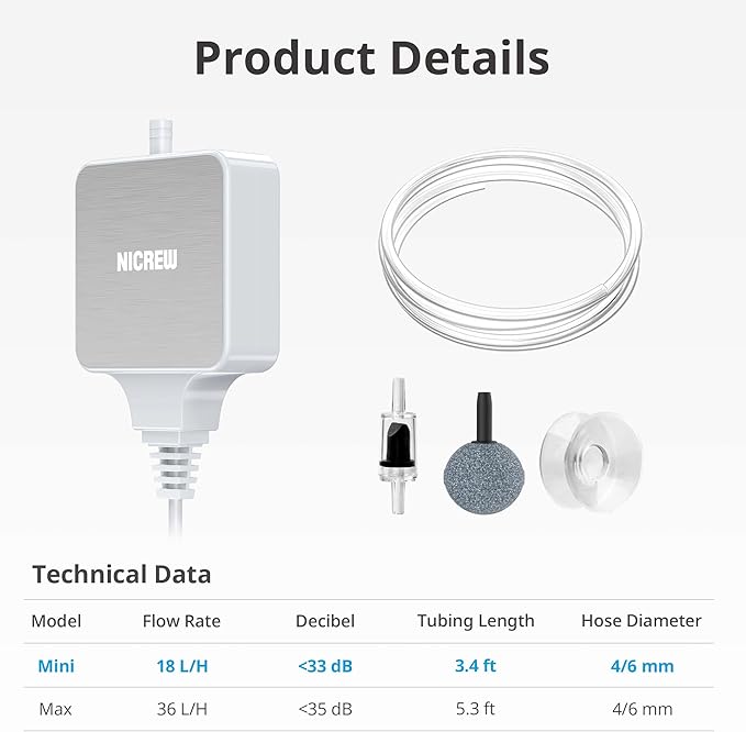 NICREW Nano Silent Aquarium Air Pump White, Aquarium Aerator with Accessories for Up to 10 Gallon Fish Tank, Super Quiet, 0.3 L/min, 1.5 Watts