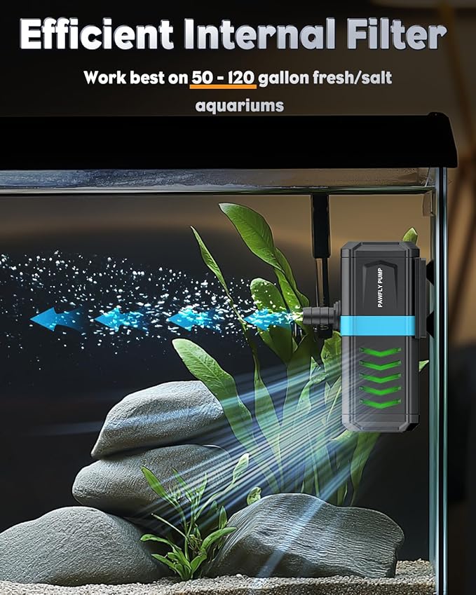 Pawfly Internal Aquarium Filter for 50-120 Gallon Fish Tanks Adjustable Fish Tank Filter with 550 GPH Powerful Water Pump Ultra Quiet Submersible Filter for Freshwater Saltwater Pond Filtration