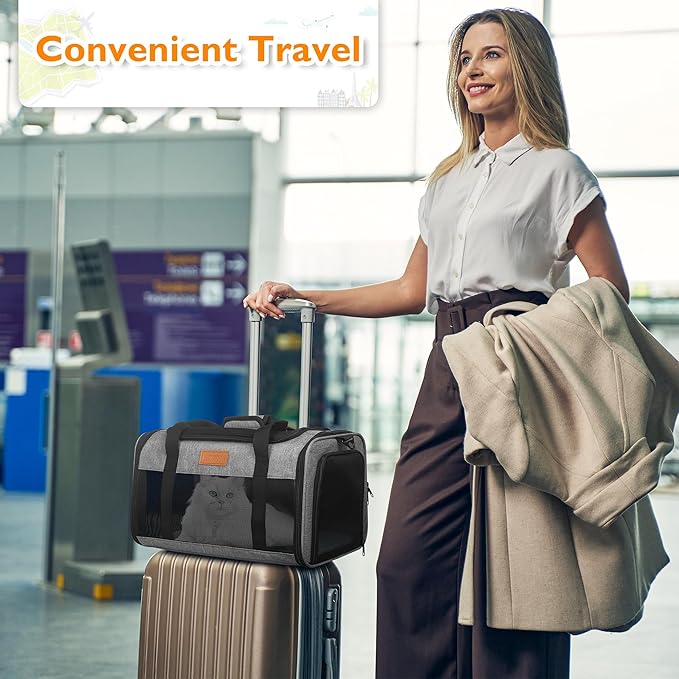 - 【Durable, Safe & Waterproof Soft-Sided Cat Carrier】 Crafted from high-quality, waterproof fabric, the PETUX cat bag carrier offers protection against the elements. It has a safe leash and a compact design that fits under the seat, allowing you to take your pet with you on your flights without worry. The top opening makes it easy to access your pet and provides comfort during travel. So the TSA-approved pet carrier in the cabin is also easy to wipe clean, making it ideal for frequent travelers