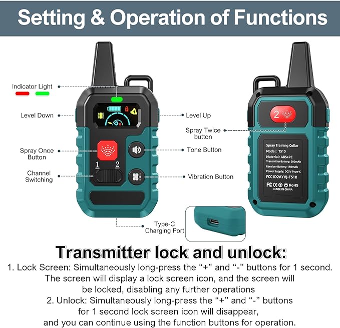 - 【Suitable for All Sizes of Dogs】The T510 Spray Dog Collar is designed specifically for small, medium, & large dogs, with an adjustable strap of 3-21 inches. We recommend it for dogs over 6 months old & weighing 8-120 use. The remote control is compact & easy to carry, not suitable for aggressive dogs/long nosed dogs/dogs with impaired smell/long necked dogs