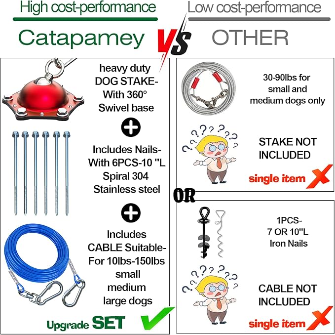 - YOU WILL GET: 1 × dog stake,6 × 10 inches 304 stainless steel anchors,1 × 20 ft dog cable.360-degree rotating ring and detachable dog chain design,This is the best gift for animal lovers. Give a set to your friends and family