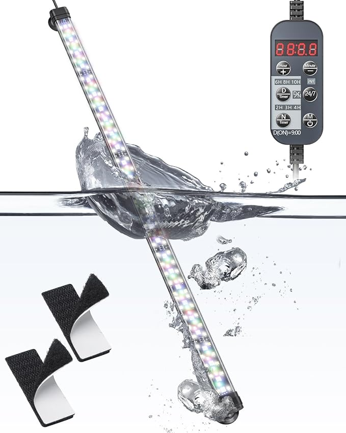 - Heavy-duty Design: The clear board of the aquarium light is strictly sealed with silicone to keep out moisture or droplets. Solid aluminum shell can accelerate heat dissipation. The long-lasting bulbs and ETL-certified adapter ensure safety and continuous lighting.