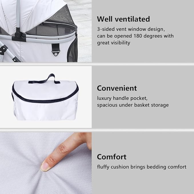 - LARGE SPACE, HOME-LIKE COMFORT: Quolliter's stroller is 4 inches taller and 3 inches longer than regular ones. Accommodating a dog up to 55 lbs or 2 dogs up to 20 lbs. Soft pod ensures a comfortable rest. 3-sided vent window design, which can be opened 180 degrees to take a glimpse of the outside