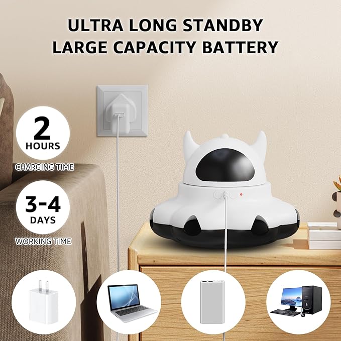 - USB-C Rechargeable: Cat laser toy Using the USB-C fast charging interface, it only takes 2 hours to fully charge. Usually, it can be on standby for 3-4 days