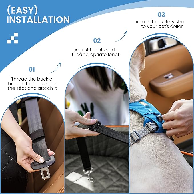 - Easy to Install & Clean: The adjustable straps securely attach to your car’s seats, and the removable cover makes cleaning hassle-free. Keep your car clean while giving your pet the best travel experience!