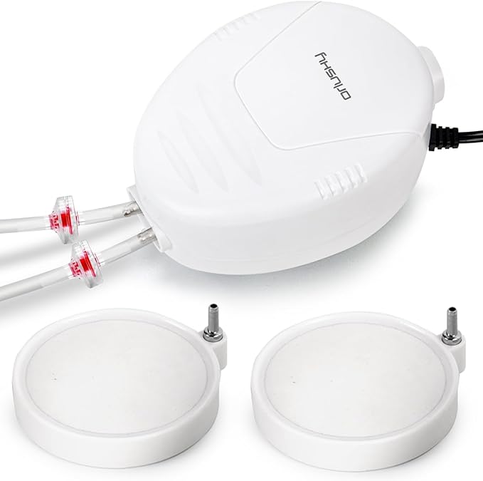 Orlushy Silent Aquarium Air Pump, Dual Outlet Adjustable Oxygen Aerator with 2 Air Stones Airline Tubing Check Valves for up to 600 Gallon Fish Tank, Hydroponic Bucket System, Bedroom Bubble Wall