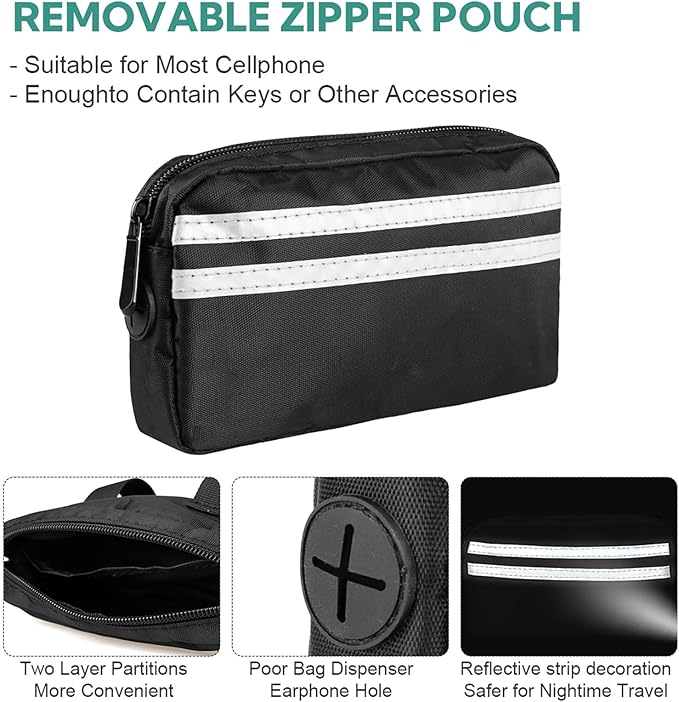 - Multifunctional Dog Walking Bag: This dog walking fanny pack has perfect size so, it's super nice to put your phone, poop bags, treats and house key in it while you are out about with your dogs and no bulging! Get ready to have the best time with your dog with the attached bag in a dog running leash hands free! Enjoy a hands-free walk, run experience with your furry friend!