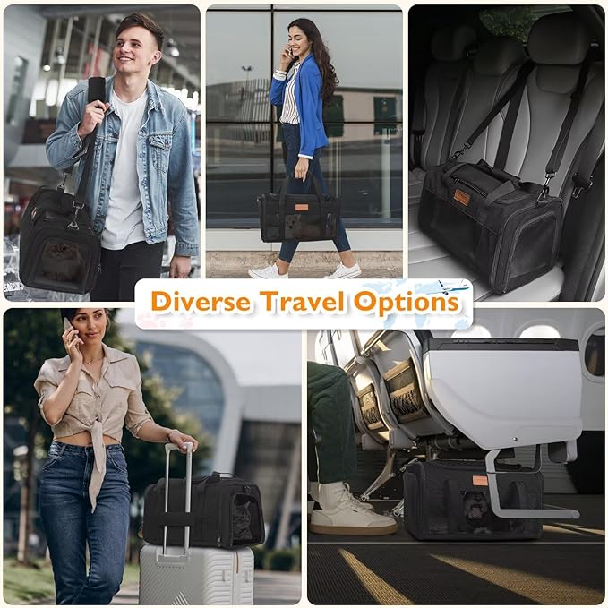 - 【Durable, Safe & Waterproof Soft-Sided Cat Carrier】 Crafted from high-quality, waterproof fabric, the PETUX cat bag carrier offers protection against the elements. It has a safe leash and a compact design that fits under the seat, allowing you to take your pet with you on your flights without worry. The top opening makes it easy to access your pet and provides comfort during travel. So the TSA-approved pet carrier in the cabin is also easy to wipe clean, making it ideal for frequent travelers