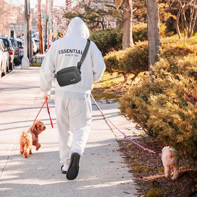 - The dual compartment offers ample space to keep everything organized—treats,wallet,phone and more.It’s incredibly convenient and keeps everything in its rightful place.This pet accessory bag is a perfect blend of style and functionality.It has made your walks with your dog so much easier and more enjoyable.Big Enough forEveryday Use.Highly recommend it to all dog parents!