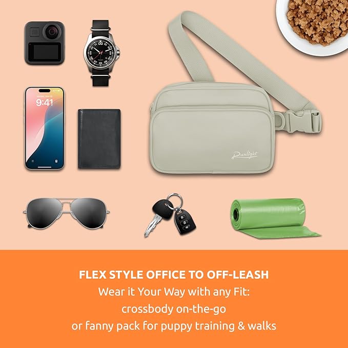 Dog Training Treat Pouch Fanny Pack,Dog Waist Belt,Dogs Walking Bag Crossbody with Poop Bags,Puppy Treat Bag Training Pouch (Khaki)