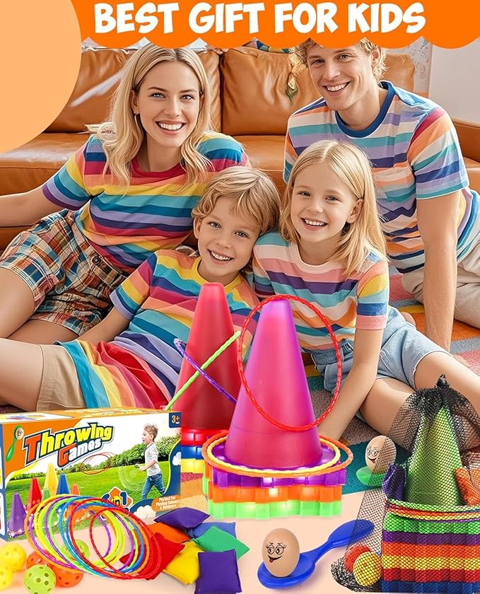 - Ideal Gift for Kids Festival and Parties: This light up garden toy set is the Perfect gifts for indoor or outdoor party games, Xmas party, Easter party, Carnival party, Construction party, Birthday party, Family reunion, Summer party, Car party, School sports day games and Camping yard etc. It will be the talk for your organize activities. It's a great way to keep kids entertained and engaged while developing important skills.