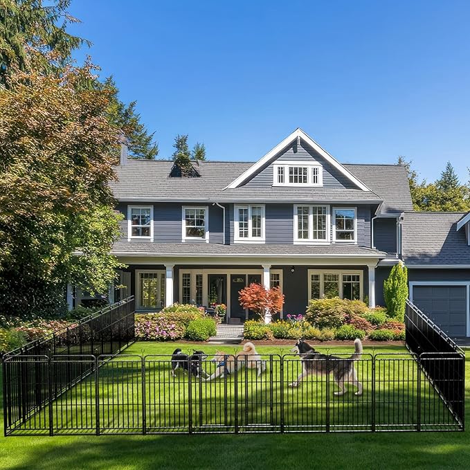 - 【Safe Enclosed & Expandable Area】The heavy-duty dog pen is sturdy and durable, pet fence provides a safe enclosed area for your pups play, run around and get the exercise they need, each panel is separate, which can be combined repeatedly for larger square footage, this temp fencing makes potty and house training much easier.