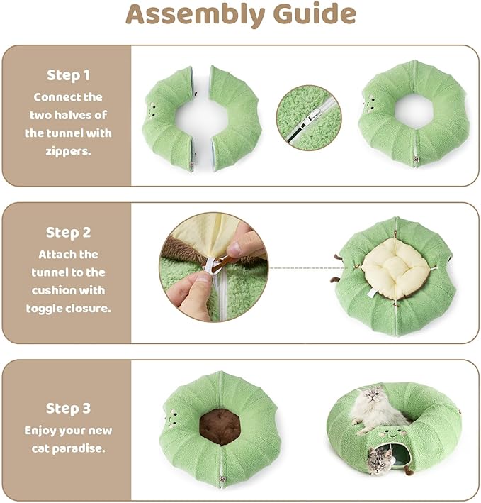 • Versatility: The innovative 2-in-1 cat tunnel bed allows your pet to play and rest at the same time. Designed with the excitement of a zippered play tunnel and the serenity of a cozy nap.