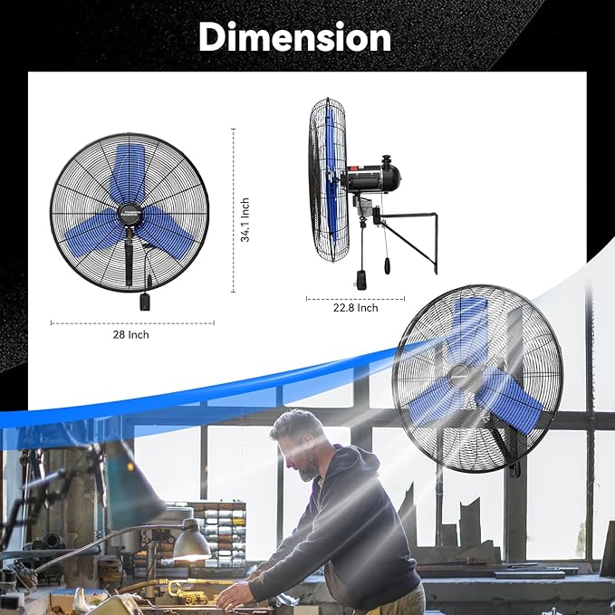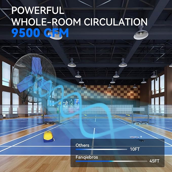 - ๐๐จ๐ฐ-๐๐จ๐ข๐ฌ๐ ๐๐๐ฌ๐ข๐ ๐ง - The heavy-duty wall fan operates at a high speed of 9500 CFM with a noise level of only 65dB, which is lower than the industry standard, creating a quieter gathering or working environment
