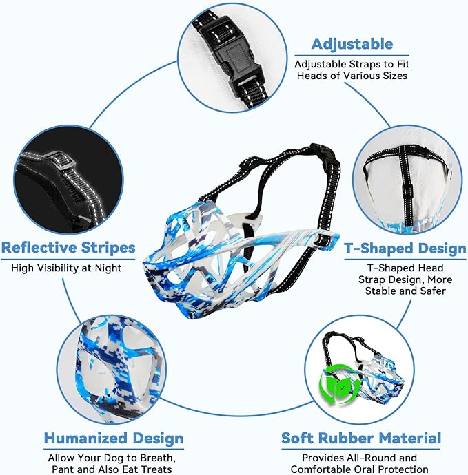Dog Muzzle for Large Dogs, Breathable Basket Muzzles for Small, Medium and X-Large Aggressive Dog, Allows Panting Drinking, Suitable for Grooming Trimming Training (Camouflage Blue, M)