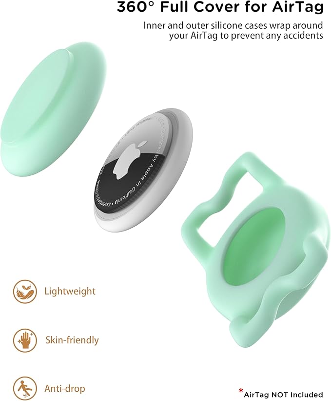 - Waterproof Airtag Holder : Adjustable dog collar with an IP68 waterproof AirTag Holder, consisting of two silicone holder that combine to protect AirTag from pet scratches, water, dust and other damages