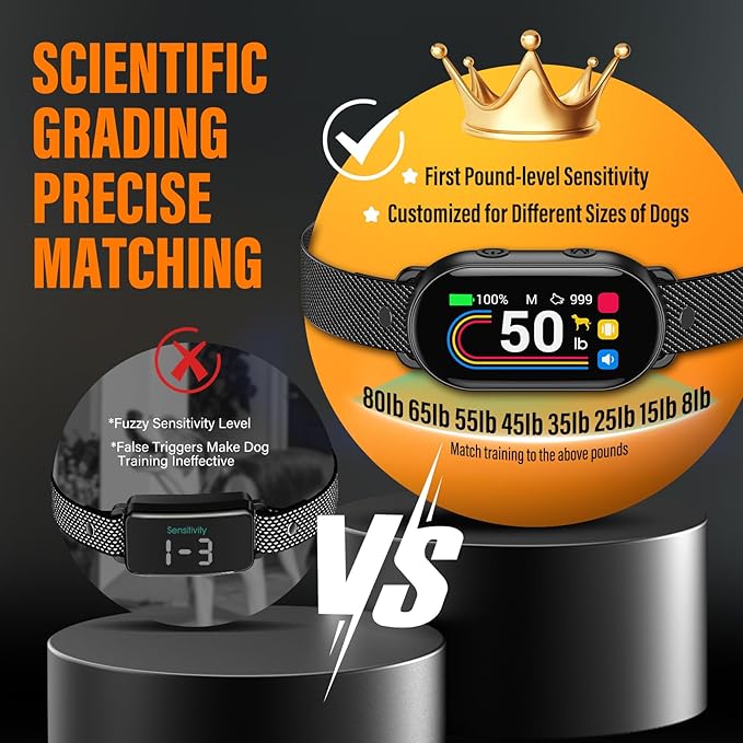 - Real-Time Bark Tracking & Training Progress: Monitor daily bark collar counts and triggers via the dog bark collar’s TFT color screen. Track improvements and adjust dog barking collar for faster results. See visible changes in just 7 days. Bark collar for dogs solves neighborhood problems and makes families happy.
