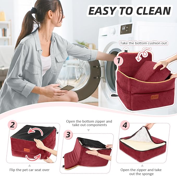 - Multi-functional Use: The small dog car seat is not only suitable for vehicles, but can also be used as a dog bed at home, outdoors or in a tent, providing your dog with a comfortable resting space anwhere. It has a removable and washable cover, simply open the zipper and take out the sponge to clean the cover. Please note that the inner sponge is not washable