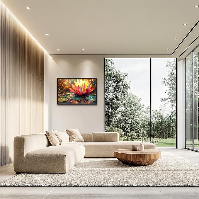 Framed Large Lotus Wall Art for Living Room, Oversized Lotus Flower Wall Decor Zen Golden Floral Canvas Painting Modern Artwork Home Decoration for Living Room Bedroom Office 36"x24"