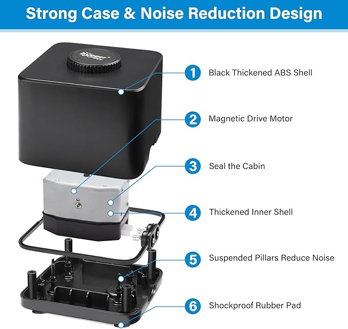 - Durable & Lightweight Design: Our oxygen bubbler pump built with high-quality ABS materials and a stainless steel dual-outlet design, this fish tank air pump is both sturdy and corrosion-resistant. Compact size and lightweight design make it easy to place anywhere. Support US standard AC 110-120V/60Hz.