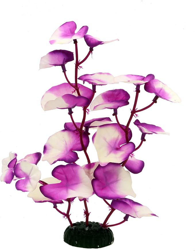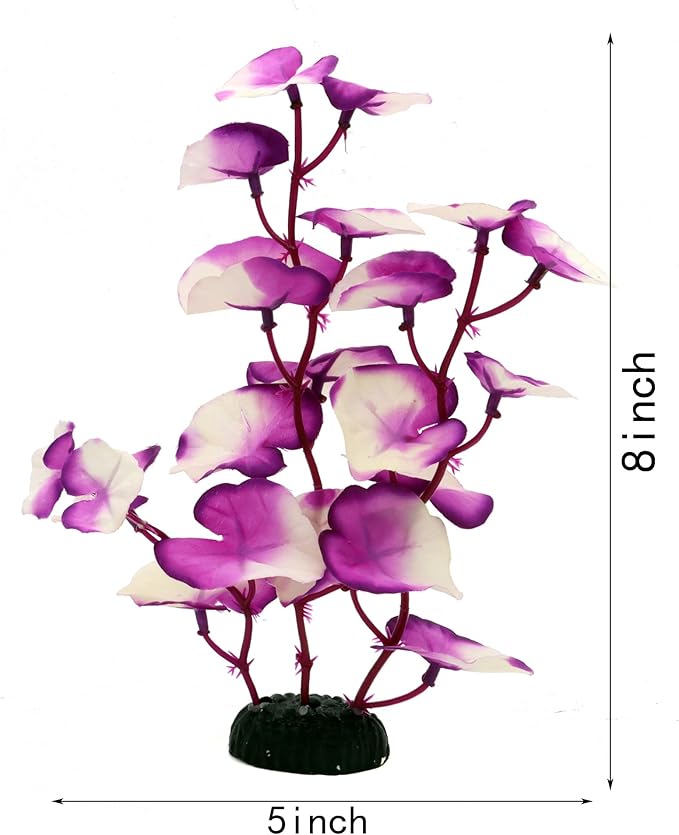 Silk Aquarium Plants for Betta Fish Tank, 2 Pcs 8 Inch Small Silk Aquarium Plant Aquatic Water Grass Decoration,Purple-White