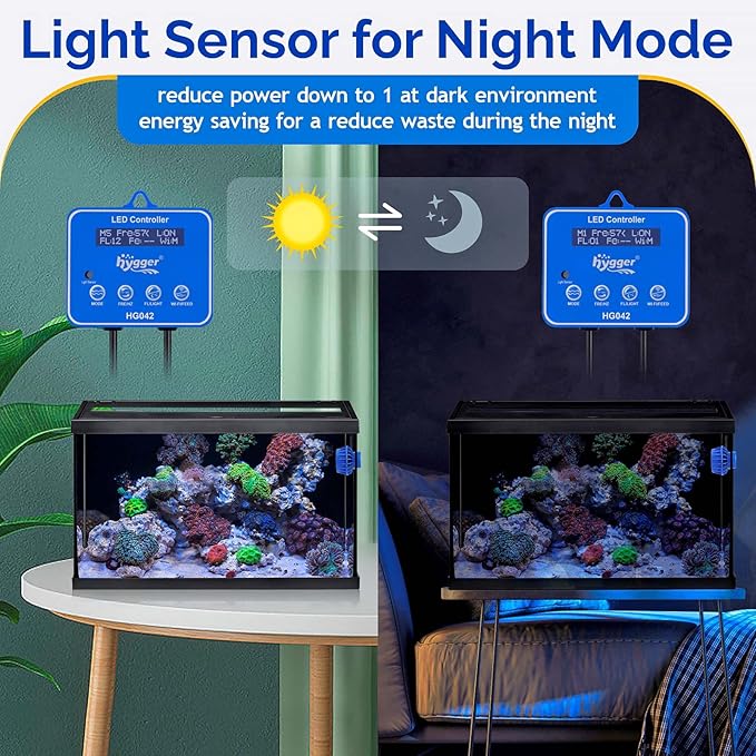 - Multi-Functional Controller - ❶ 6 wave modes option ― constant wave, pulse wave, anti sync pulse wave, sine wave, random wave, reverse wave; ❷ 1-20 power levels option; ❸ 1-99 seconds flow interval option; ❹ feed mode that turn off the pump 10 minutes during feeding time; ❺ light sensor for night mode to reduce power level down to 1; ❻ Sync function can be linked wirelessly to synchronise modes