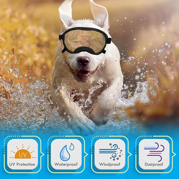 - Cool Dog Goggles: From daily walks to beach fetch games and ski trips, these goggles shield eyes from sun and wind, while making your pup the trendiest explorer. The breathable design keeps them comfy for photo shoots or car rides!