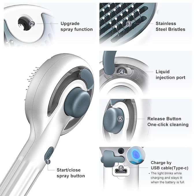 - Gentle Water Mist for Static-Free Brushing: The integrated water spray feature emits a fine mist that reduces static and flyaways. Perfect for indoor cats who dislike traditional brushing, it softens fur and makes grooming more effective without scaring your pet.