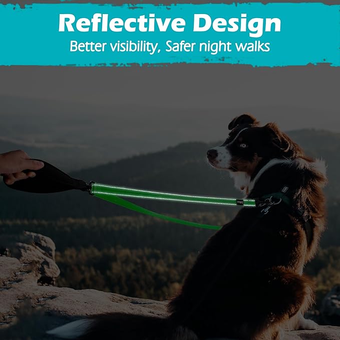 PetBonus Two Point Control Dog Leash, Works with No Pull Harnesses, No Tangle Training Leashes, Soft Padded and Reflective Walking Lead, Converts to Single Lead for Medium Large Dogs (Grass Green)